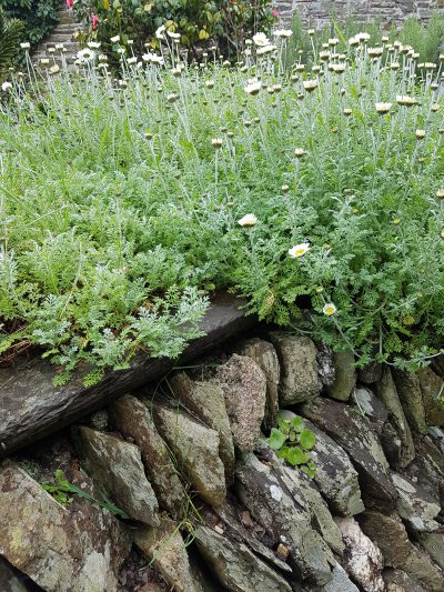 Daisy plant and stone wall at Helen and John Worton’s Cornish home. Photo and blog: Charis White Daisy plant and stone wall at Helen and John Worton’s Cornish home. Photo and blog: Charis White