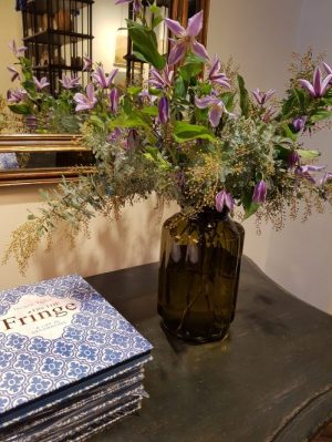 Violet Clematis floral display at Sybil Colefax & John Fowler showroom on Charis White interiors blog Violet Clematis floral display at Sybil Colefax & John Fowler showroom on Charis White interiors blog