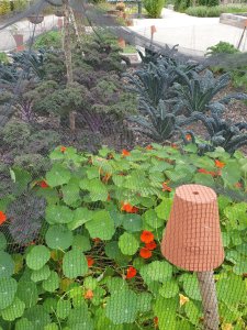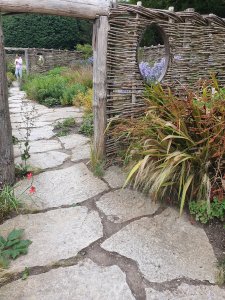 A centrepiece to the garden is an egg-shaped section with 460 apple trees (267 British varieties) espaliered in a baroque style across sweeping walls and fences. The bones of the garden are strong with local stone walls, undulating metal framed tunnel walkways, ponds, vegetable garden and garden rooms divided with hazel panelled walls complete with sweet oval look-through windows. There were so many landscaping details to look at but I particularly loved the textural use of cedar wood blocks and pebbles for patios.