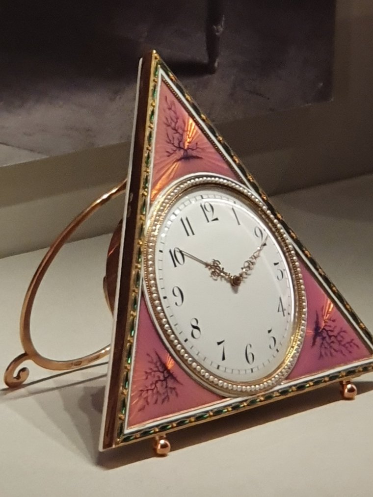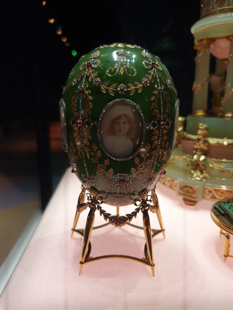The grand finale is a room at the end of the exhibition which displays 15 Imperial Faberge eggs, 3 of which haven’t been seen in the UK before. Again, extraordinary to think that Larissa’s grandmother who as lady-in-waiting to the Empress and the Dowager Empress would probably have been familiar with these personal objects.