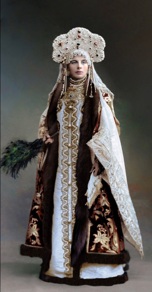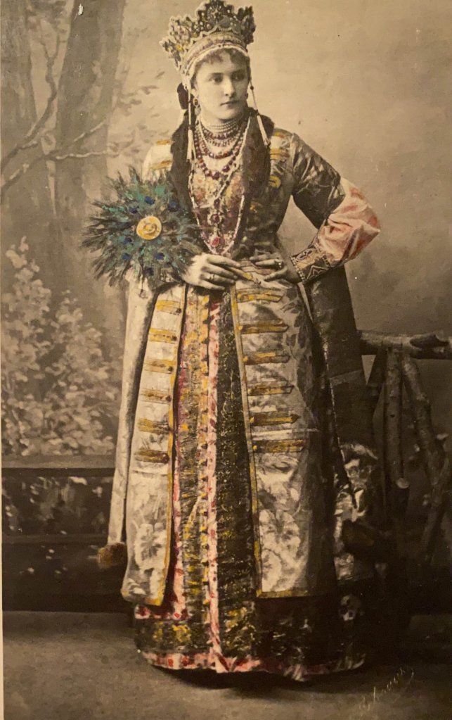 “Kokoshnik headdresses can be traced back to the 10th Century and then went in and out of fashion in society, though remained a traditional costume for folk dancers in performances. Kokoshniks then became very much en vogue in the last centuries when they were worn during ceremonies at court and fashioned into tiaras, and the most fabulous versions were seen at the famous St Petersburg Ball,” says Larissa.