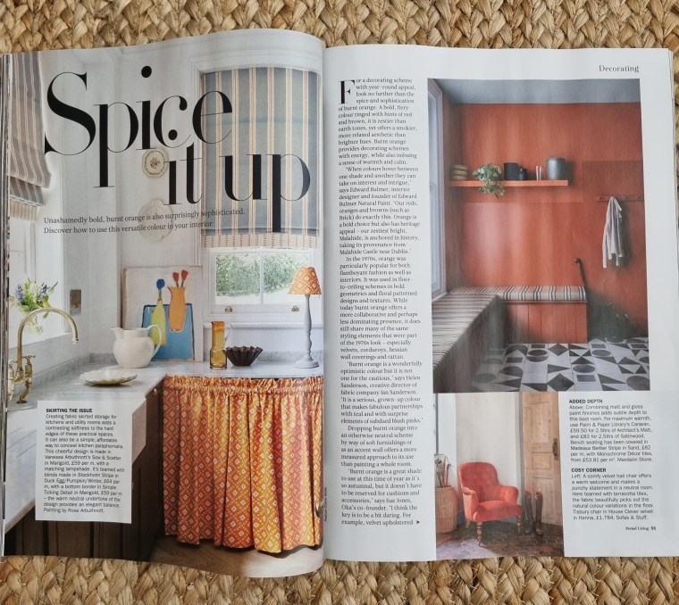 Decorating with delicious burnt orange is a subject I enjoyed delving into with a 6-page decorating feature in the October 2022 issue of Period Living magazine and was delighted to come across even more NEW designs for AW22 since I wrote it.