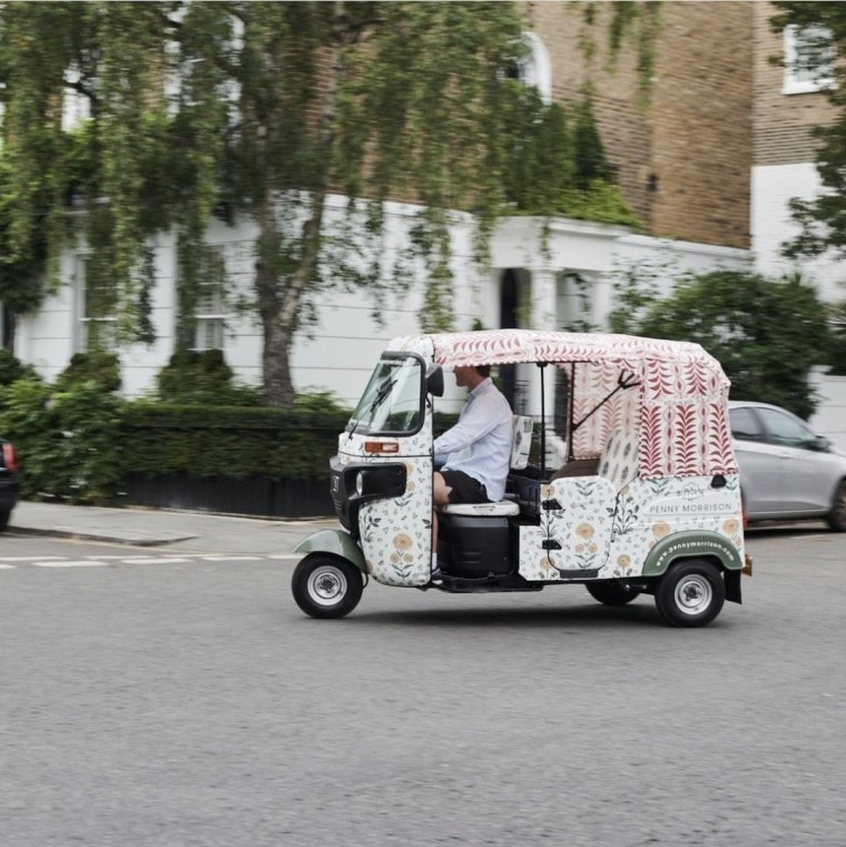 World-renowned interior and textile designer Penny Morrison and founder of The Fabric Collective, has cleverly taken Penny Morrison advertising to the street via an Instagram hashtag #PennyonWheels with her super stylish fabric covered tuk tuk.