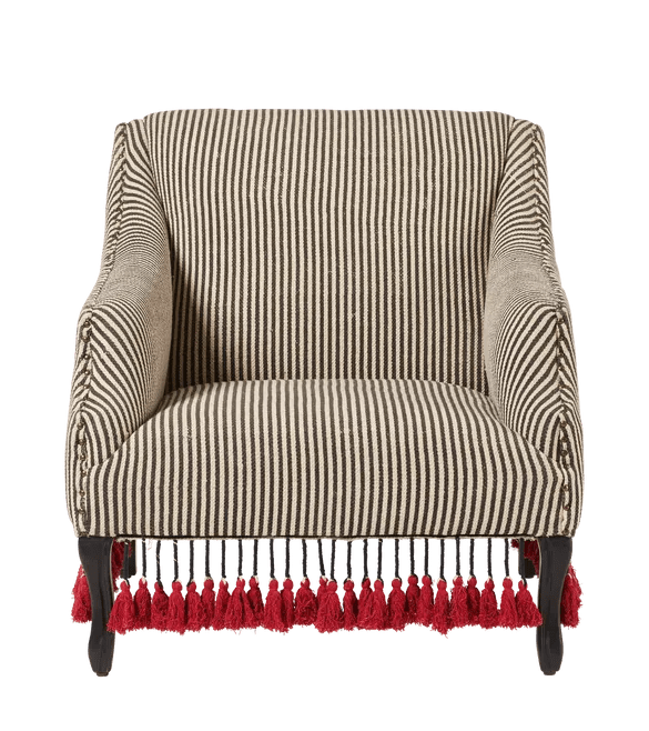 There are newer upholstery editions of OKA’s Tamara armchair for Autumn ’22, but the versatility of this classic ticking stripe is the version I like the most.
