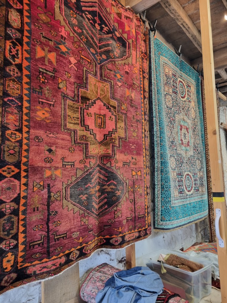 Competition for Liberty of London with this impressive selection of vintage and antique rugs in Malthouse Antiques, Narbeth, Pembrokeshire Photo: Charis White