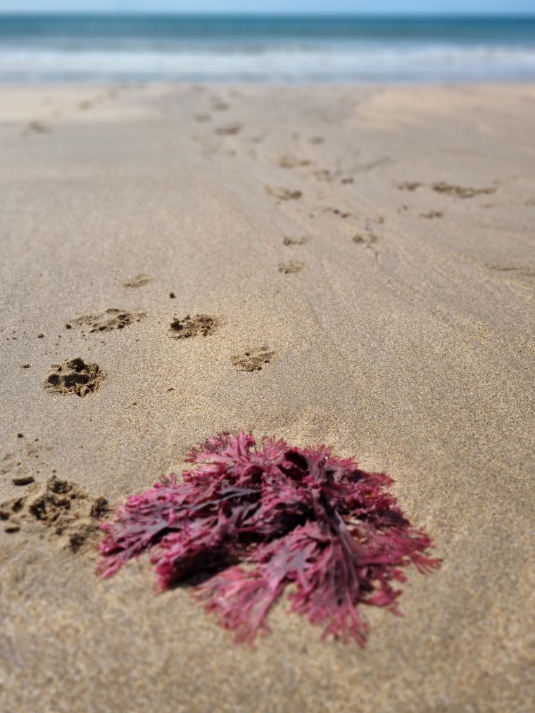 Pink seaweed on Broad Haven South Beach on the National Trust Stackpole estate, Pembrokeshire. Photo: Charis White
