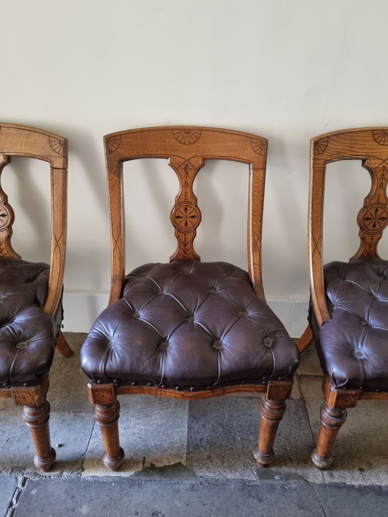Edwardian chairs at West Dean scrumptiously upholstered with buttoned leather.