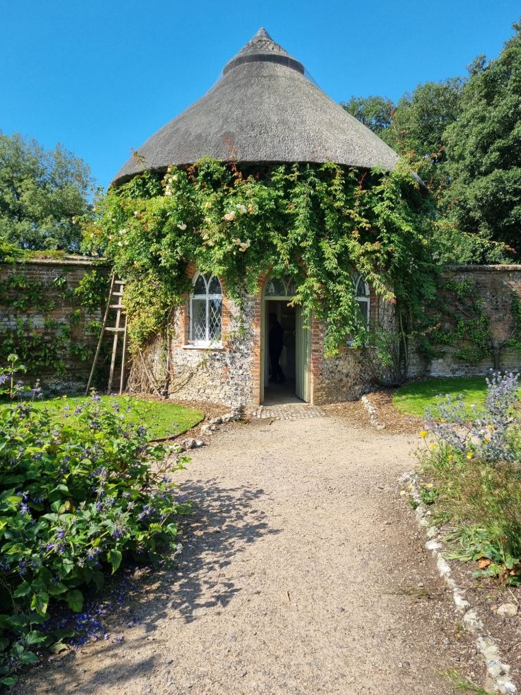 Circular thatched flint built folly/garden room at West Dean College. Photo: Charis White