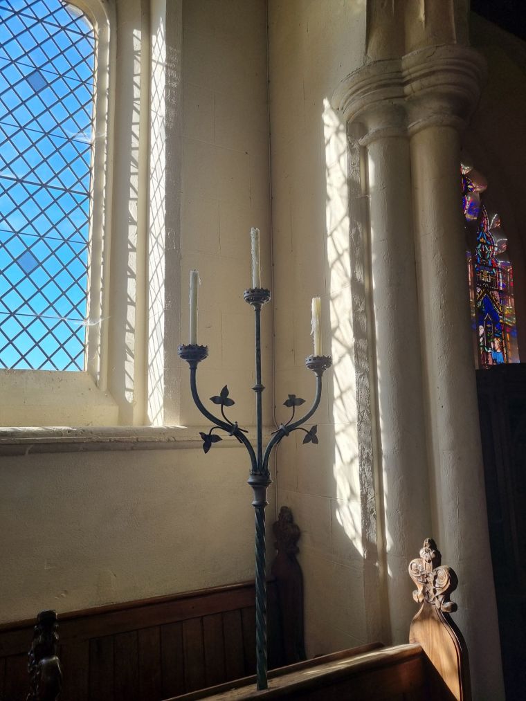 Light streaming in from a chancel window on the south side of St Bartholomew’s church, Lower Basildon, Berkshire. Photo: Charis White