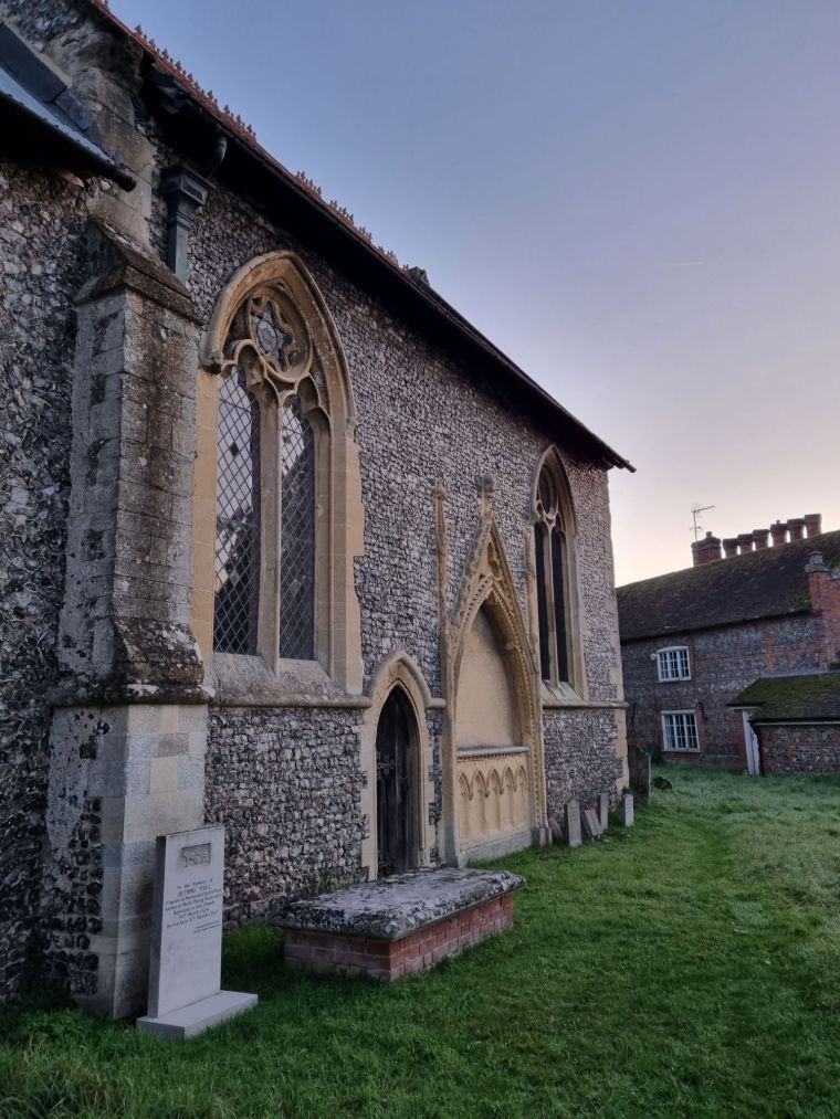 Made from flint and brick, St Bartholomew’s is a pretty 13th-century church enveloped by nature in a countryside setting where little has changed for centuries. It is flanked by Church Farm with its Dutch style gable and by the Georgian Old Rectory. Just a couple of meadows away lies the river Thames with the swell of the Chiltern Hills beyond.