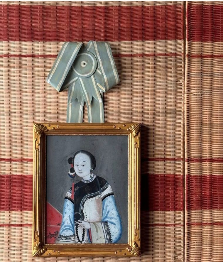Casa Gusto in Florida are influential interior designers, art and antique dealers who have the most incredible eye. There is everything to love about this image of theirs with its red striped woven screen, Chinese painting and wonderful tole painted bow. It’s so stylish and reminds me how the bow continues to hit a note.