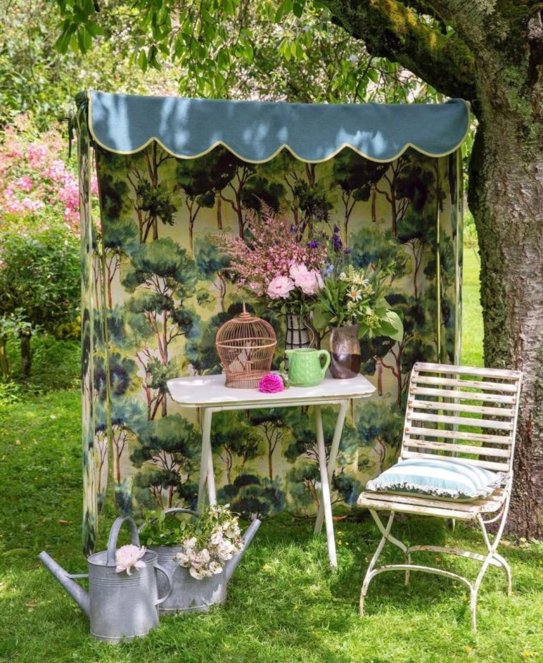 Whilst planning your garden visits and escapes this summer, you might like to take inspiration from these gazebos. Perfect for shade and for creating a little bit of outside sanctuary. The first is made from “Ferret”, a new In-Outdoor fabric (stain resistant and lightfast), by Pierre Frey (note the Hollywood Regency scalloped pelmet) and the second is one of many incredible thatched garden gazebos at West Dean College Grade I listed garden in West Sussex.