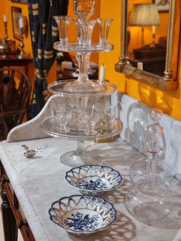 Hilary has one of the best selections of antique glass in London, specialising in Regency glass in particular with her colleague, UK top glass expert David Glick. “We get a lot of requests around Christmas time for sets of champagne coups and wine glasses. Castle Howard also continue to be one of our clients,” says Hilary.