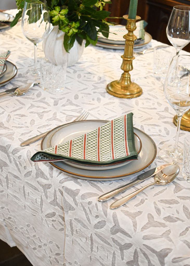 A friend does this kind of hosting so stylishly well and I also enjoy Paula Sutton’s @Hillhousevintage Instagram tablescapes she creates in her Norfolk home. There is something so soothing about how a fabric tablecloth makes you feel. They somehow bring a sense of order and social cohesion in an unpredictable world.