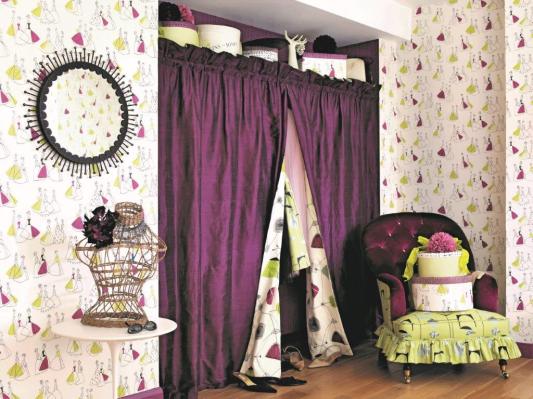 50s Sanderson fabric wardrobe and Fifi wallpaper