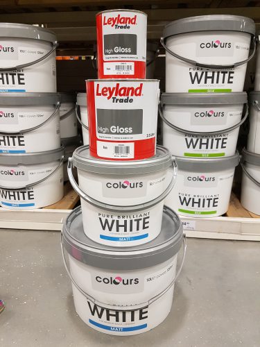 Paint pots for faux wedding cake: Charis White stylist for Tissus D’Helene window 2017 Paint pots for faux wedding cake: Charis White stylist for Tissus D’Helene window 2017