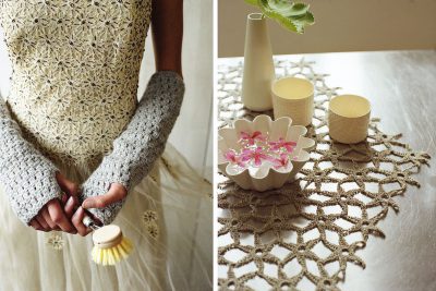 Crochet mits by Erika Knight with Wedding dress. Photograph: Yuki Sugiura, styling Charis White Crochet mits by Erika Knight with Wedding dress. Photograph: Yuki Sugiura, styling Charis White